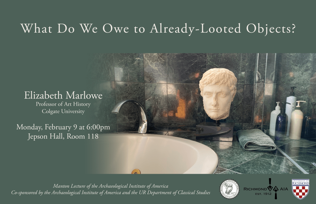 A Manton Lecture of the Archaeological Institute of America, this lecture is co-sponsored by the University of Richmond Department of Classical Studies and will be free and open to the public. Light refreshments will be served!