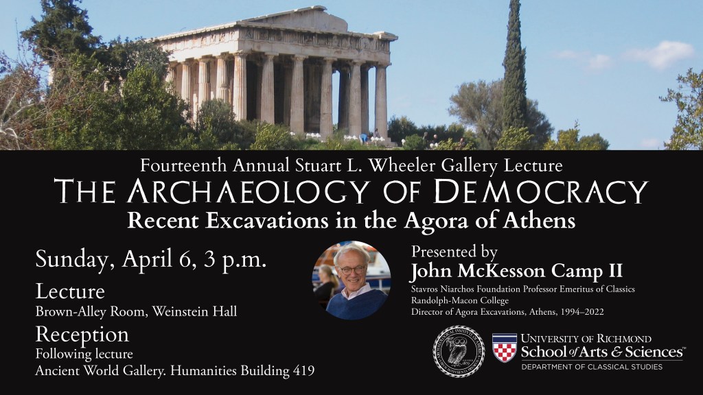 All lectures will be held in at 6 pm on the University of Richmond campus in Jepson Hall, Room 118 (unless marked*), co-sponsored by the University of Richmond Department of Classical Studies